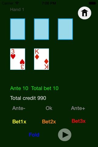 4. Player may fold or make a "3rd Street" bet, of one to three times the ante.