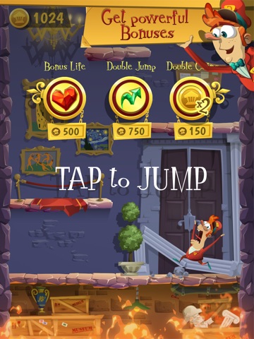 It was a silent night in the museum...until a nosy guard decided to play with electricity. Now the whole building is on fire and the only way out is through the roof!