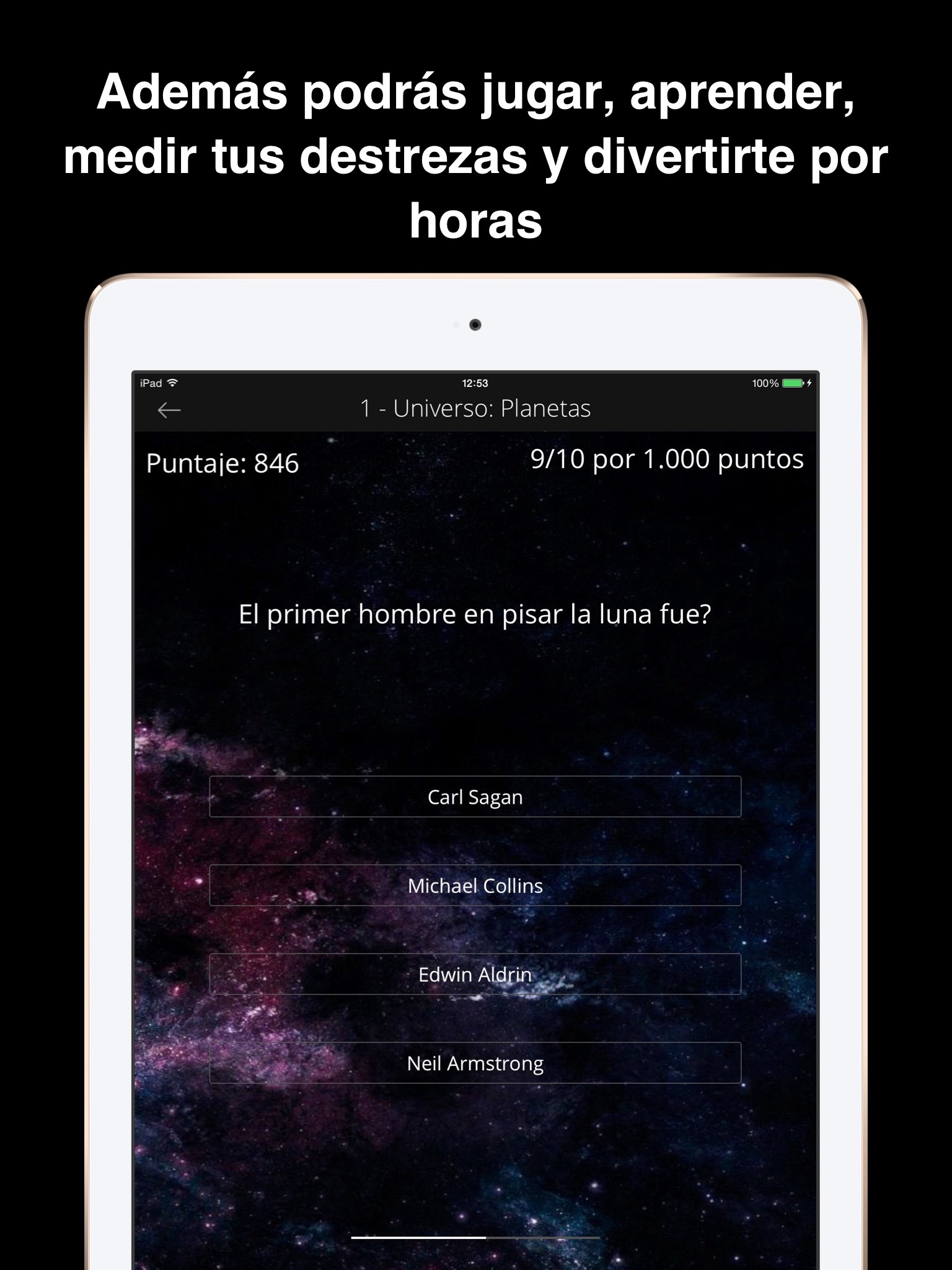 Es hora de aprender mientras te diviertes jugando sin parar. Hay 80 cuestionarios listos para medir tu desafío y destreza en conocimientos. Competirás contra el tiempo en 3 diferentes niveles de dificultad, podrás almacenar y compartir tus puntos ganados y ser el campeón del mundo, desbloqueando logros con tu cuenta de Game Center.