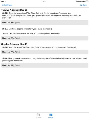Mit Lectio har nu mulighed for at vise dig dine lektier, præcis ligesom de står inde i Lectio.