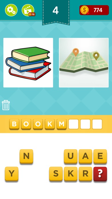 Simple and addictive puzzle game! If you like 4 Pics 1 Word or Trivia games youll love this game.