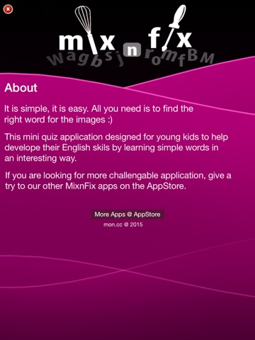 Mix n Fix - Words is a simple quiz application specially designed to learn basic English words. All you need is to discover the word behind the showing image.