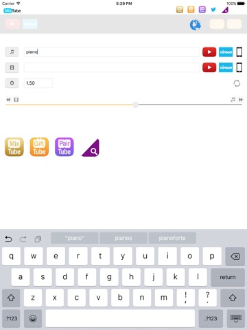 No need to download any video file but you can enjoy mixing from 2 (TWO) Videos from YouTube,Vimeo and your own.