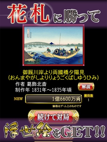 一定以上の得点で勝負に勝てば、浮世絵コレクションがもらえます。