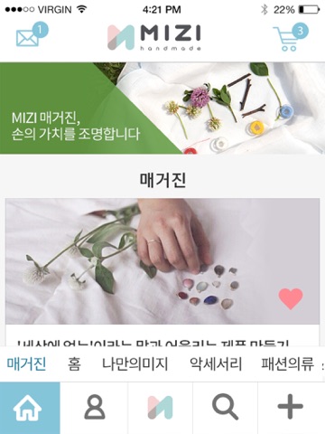 1. 아티스트 소개 및 핸드메이드 관련 소식을 전달하는 아티스트 매거진을 보여드려요.
