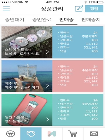 - 작가 전용 어플리케이션으로 판매/배송/매출 관리를 할 수 있습니다.