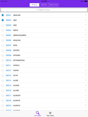 mKaraoke là ứng dụng giúp người dùng tra cứu thông tin bài hát trên các dàn karaoke Arirang, California, Music Core.