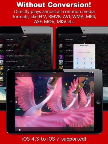 PlayerX is a versatile media player that can play almost all popular video and audio formats, without the need for conversion. It also supports more transfer methods than iPhone/iPod’s default player, i.e. in addition to the usual USB transfer, you can also use your web browser to upload content via WiFi, or store and play the audio and videos in e-mail attachments.
