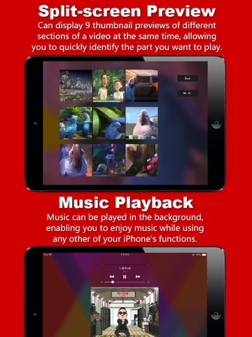 - Split-screen preview. PlayerX can display 9 thumbnail previews of different sections of a video at the same time, allowing you to quickly identify the part you want to play.