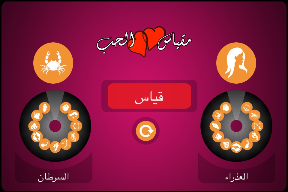 فقط قم بتحديد برج كل من المحبوبين واترك الباقي للتطبيق ليقوم بحساب التوافق بينهما