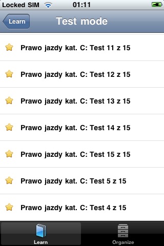 ML Prawko C - a successor to highly appreciated mobiLearn Prawko B, covering the scope of the C category. Test your theoretical knowledge of Polish Highway code by answering all of 193 questions from the official database valid until the end of 2010. The question bank has been divided into 15 separate tests, 18 questions each, so that they reflect the real test challenge you will be