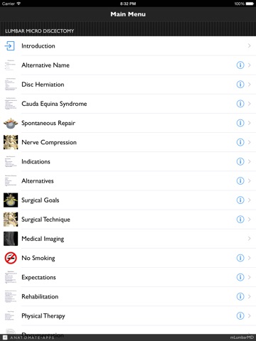 mLumbarMicroDiscectomy is part of the lumbar spine library of patient education applications. Anatomate-apps have a range of spine apps including the reference apps iSpineCare, iSpineOperations and iSpinePainManagement.