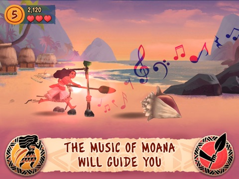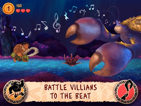 Tap your way through this rhythmic, action-adventure game featuring music from the new Disney film, Moana! Play as both Moana and Maui as you journey to restore the Heart of Te Fiti. Voyage to distant islands, take on Kakamora pirate ships, and battle in the Realm of Monsters. Experience the unforgettable music directly from the Moana film as you sail, jump, run, and fight your way to save the day and discover your destiny.