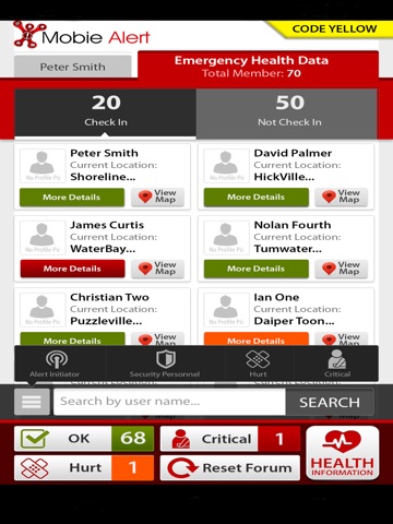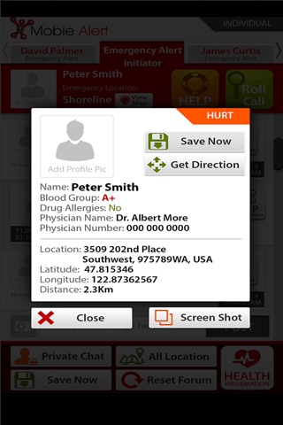 • All members’ locations are marked by GPS and mapped at the time of the emergency.