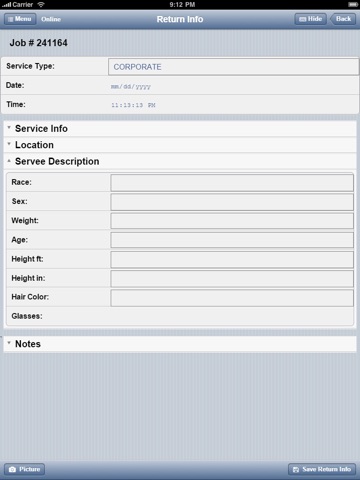 This software is for process servers to assist in taking notes, pictures and GPS timestamps while serving papers.