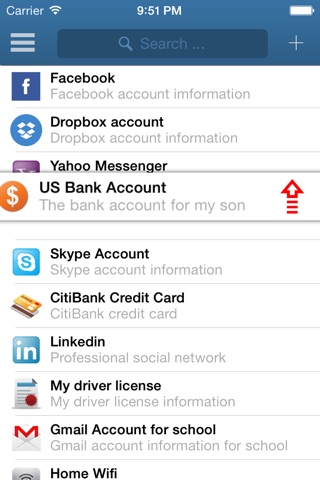 •There are lots of form templates ready for using or customizing like Bank Account, Credit Card, Email Account, FTP Account, Server Account, Web Account, Instance Messenger, Passport, Driver License, Wifi Access Code, and Simple Contact and so on…
