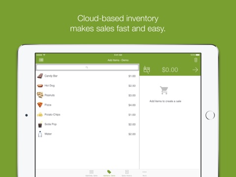 • Cloud-based Inventory and Reports - Create inventory lists and manage sales reports from any device