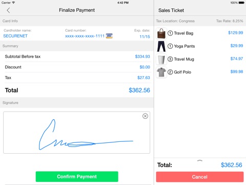 • Ditch Your Register - Accept credit card payments and track cash transactions on your iPad or iPhone
