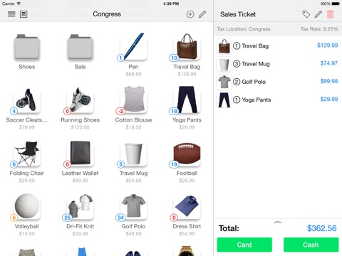 • Conveniently Setup & Organize Inventory – Customize products/services with names, photos & prices and group by categories that make sense for the way you do business