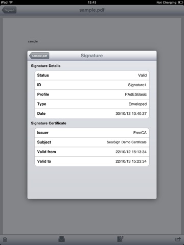 Mobile Signer is based on the SealSign Engine solution, from 11Paths, a Telefonica Company. SealSign Engine is an enterprise server that integrates electronic digital signature of documents in business applications and mobility devices. It is a complete, flexible and versatile signature engine: