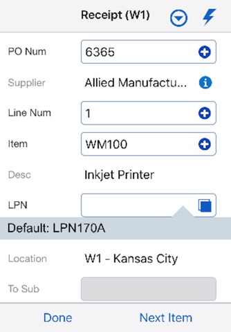 - Perform inventory transactions like move, count, issues, receipts, receive, pick, and ship.