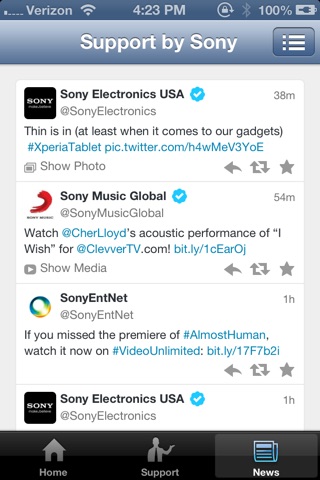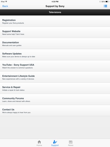 This initial release provides shortcuts to Sony’s support outlets, so you can find the help you’re looking for right on your mobile device.
