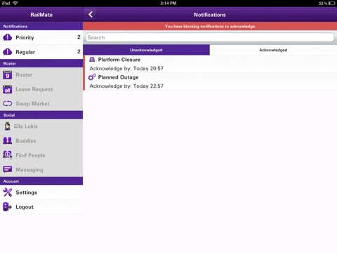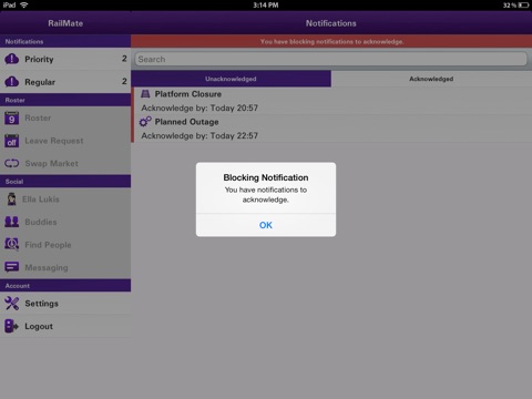 RailMate is an enterprise application for the train drivers and guards to view and automatically update rosters, swap roster shifts legally with similarly qualified users, receive and acknowledge important notifications from their company, and develop a social network with other users of the app.