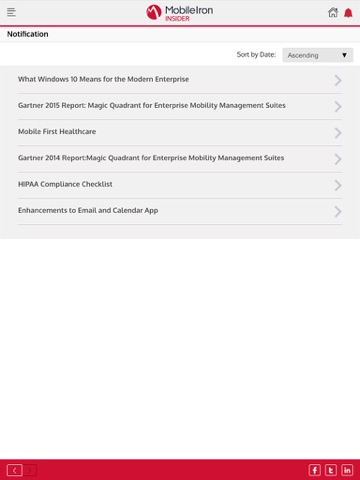 The MobileIron Insider app provides direct and secure access to MobileIron content anytime, anywhere. This app puts the latest product updates, training, news, and industry insights at your fingertips. Whether you’re an IT administrator, network security manager, or CIO, the MobileIron Insider app delivers everything you need to know about embracing mobility and transforming your business.