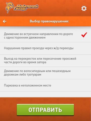 - Отправка снимков правонарушений в ГИБДД