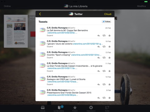 Con MobileReplica CRER potrai usufruire di un servizio documentale con il quale tenerti aggiornato sul ciclismo Emiliano Romagnolo.