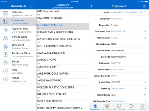 WennSoft Signature MobileTech 2013 provides technicians, who are dispatched to complete service calls, access to a customer’s service location, equipment, appointment activity, and task details. The technician can complete the service call/ticket, schedule additional work, capture customer signatures, and synchronize everything back to the office for billing or follow up. Because MobileTech has store and forward capability, the information is available to your technicians even when disconnected, so they stay on task.