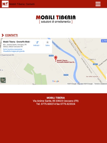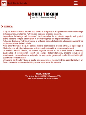 La società “Mobili Tiberia”, nel nuovo negozio situato in Via Anime Sante a Ceccano, avvalendosi di collaboratori esperti nel campo dell’arredamento, propone soluzioni di arredamento personalizzate e originale, tra una vasta gamma di prodotti forniti dalle più qualificate società italiane.