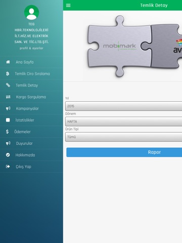 Uygulamanın “ticari analizler” sekmesi, ürün grubu ve marka dağılımlarına göre mevcut satışların analiz edilmesine olanak tanıyor.