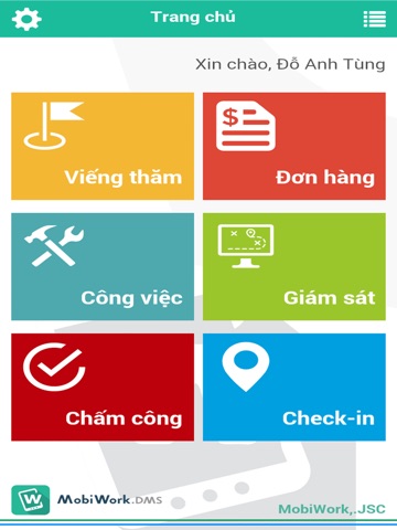 Bằng cách cài đặt ứng dụng MobiWorkDMS trên máy tính bảng, điện thoại di động thông minh có kết nối internet (3g,wifi). Khi thực hiện viếng thăm khách hàng, nhân viên bán hàng dễ dàng đặt đơn hàng, lập tức đơn hàng được cập nhật về bộ phận kế toán bán hàng tại trụ sở để xử lý xuất kho, giao hàng.