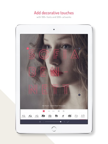 Apply dramatic filters, cool effects, add eye-catching typography and artworks to your photos.