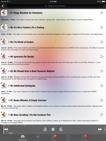 Really Id rather just use the Apple podcasts app. I dont see why Id use this over that one. There is a fancy blur effect in the list, but I just want to listen. So I dont really need fancy effects.