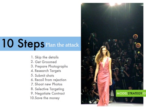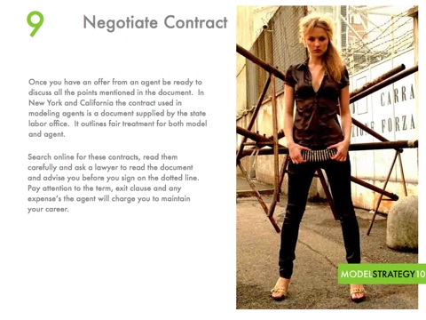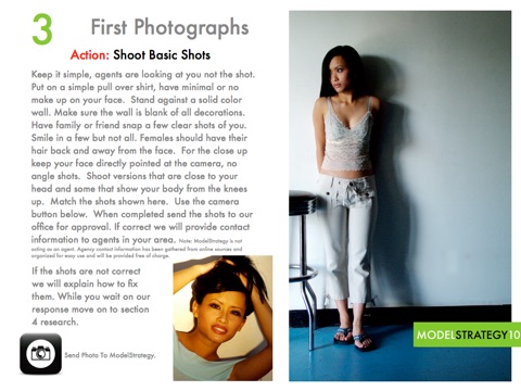 The app features 10 easy steps for the new model to follow. Each step clearly explained with easy to understand instructions. Model Fast Trak even helps the new model understand rejection and how it should be interpreted.