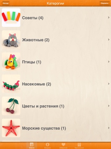 Our application includes many colorful and interesting lessons on the modelling from plasticine. All lessons are well illustrated in the form of high-quality photographs and animated step by step instructions are provided with a detailed description of each activity, that makes the learning process simple and convenient.