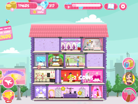 Collect coins and gain xp and use it to build and discover gorgeous rooms, decorations, shops and fun rooms.
