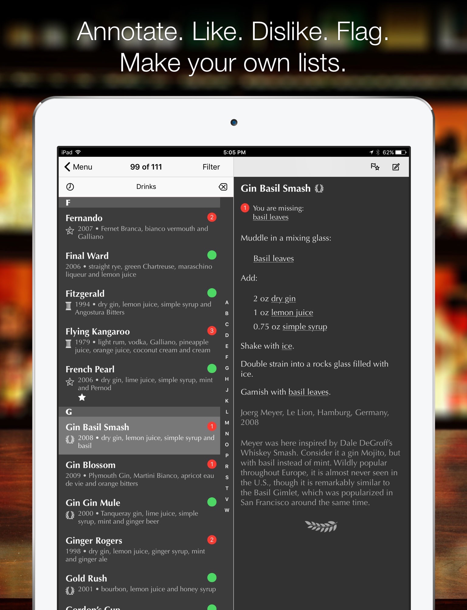 - Sync your ingredient inventory, favorites and flagged, custom lists and journal entries across our entire suite of apps and over as many iOS devices as you like, using our free sync service