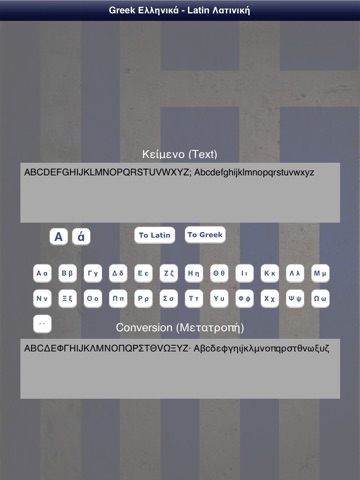 Easily convert between Latin text and Greek Cyrillic. Tinkering with your locale settings is not required, and both ancient and modern Greek text is supported, as well as accented cyrillic characters. Whether you are a student, Greek culture enthusiast, or aspiring bible historian, the Modern Greek Alphabet Converter has something for you. Compatible with both all versions of the iPhone, iPod Touch, and iPad.