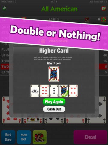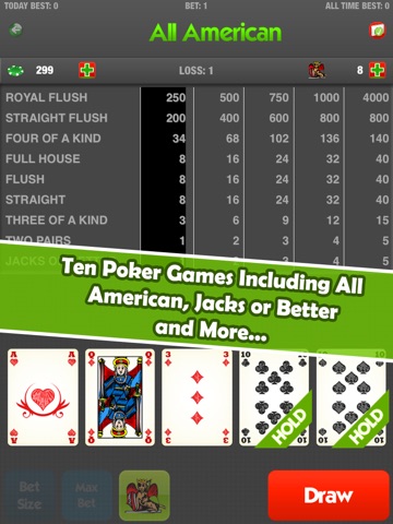 There are literally 10 poker games including 2 extra "double or nothing games" that will either make or break your high score: