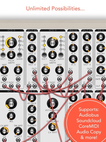 Modular goes a step further with connectivity and supports Audiobus, CoreMIDI, as well as AudioShare so that your music making workflow is streamlined and integrated.