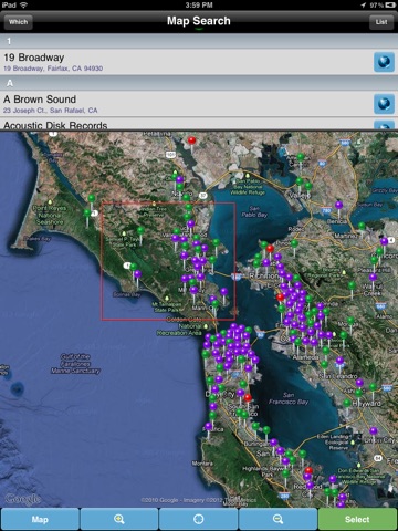 • See all your contacts’ addresses on a map. Draw a box on the map and get a list of every address within it.