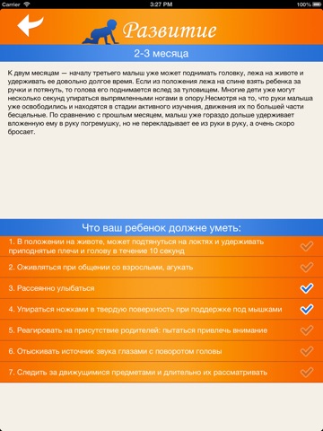 - В приложении содержится информация: когда необходимо нанести визиты к врачу и их цель; питание; режим; купание новорожденных; аптечка для новорожденных; туалетные принадлежности для малыша.