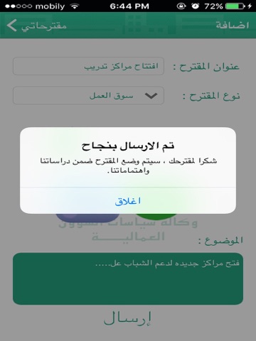 مقترحات وزارة العمل هو تطبيق مطور من قبل وكالة السياسات العمالية بوازرة العمل يهدف الى خلق حلقة وصل بين وزارة العمل ومقترحات أو شكاوى عملاء الوزارة