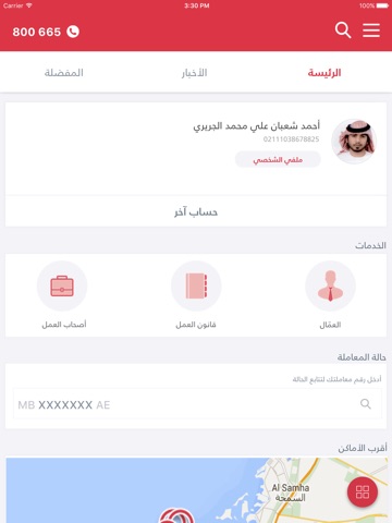 o خدمة تحديد أقرب مكتب من مكان تواجد المتعامل مع عرض تفاصيل العنوان ومواعيد العمل الخاصة به