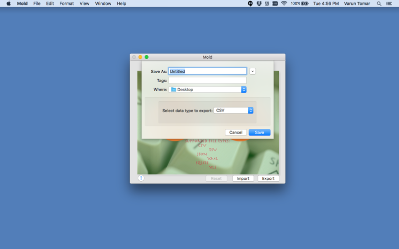 2. Supported file formats to import are CSV, TSV, JSON, SQLITE, XLS (Excel 1997-2004 compatible). Supported file formats to export are CSV, TSV, JSON, XML, SQLITE.