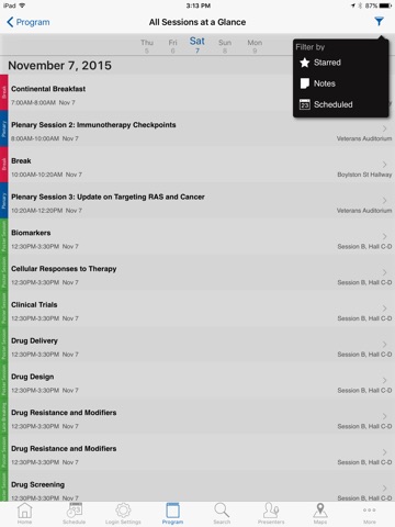 - Personal Itinerary: Sessions can be bookmarked and saved to create a personal schedule for the meeting. You can also create a schedule using the Online Itinerary Planner and sync it to the app.