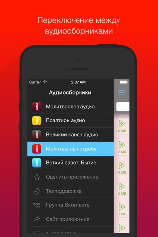 ・Легкое переключение между православными тематическими аудиосборниками через выпадающее меню;
